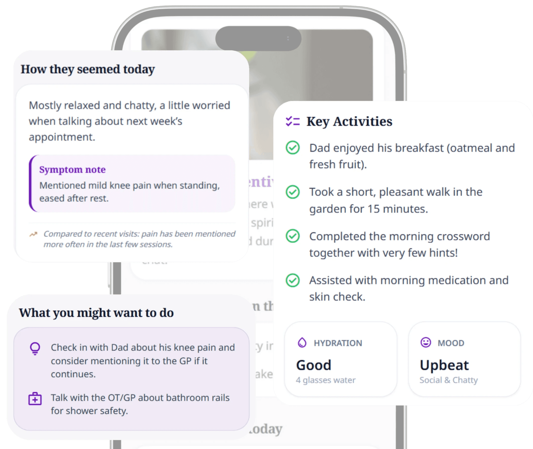 Every day, families place enormous trust in carers they have barely met inside homes they cannot always visit. They rely on background checks, star ratings, and hope. But background checks tell you who someone was. They don't tell you how someone shows up on a Tuesday afternoon with your father when no one is watching. Carers, in turn, give some of the most demanding, intimate, and emotionally complex work imaginable and have almost no way to prove how good they are, or protect themselves when something goes wrong. Care receivers, the people at the centre of all of this, have the least power and the most at stake. And providers and agencies are managing quality through spot checks and complaint logs alone. We believe this is broken. And we believe the fix is transparency. Not surveillance. Not tick-box compliance. Real, respectful, consent-based evidence of how care is actually delivered turned into something useful for everyone involved.